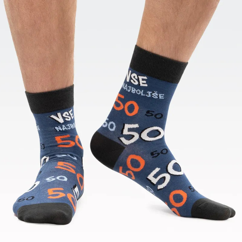 Nogavice z napisom vse najboljše in števiko 50, so zabavne in praktične nogavice, namenjene praznovanju 50.rojstnega dne.