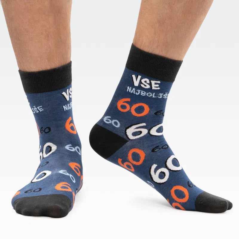 Nogavice z napisom vse najboljše in števiko 60, so zabavne in praktične nogavice, namenjene praznovanju 60.rojstnega dne.